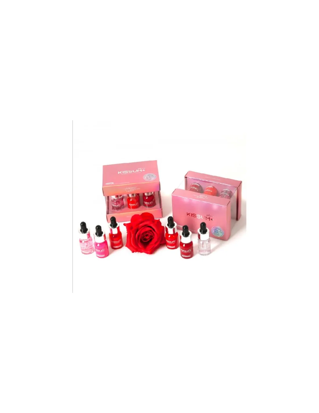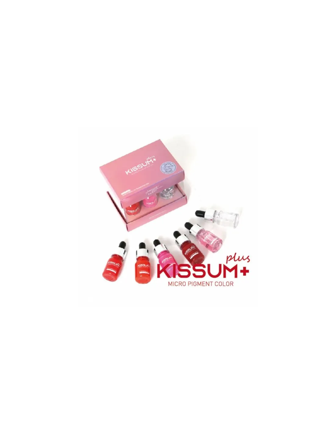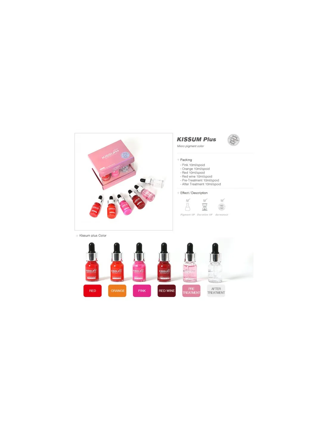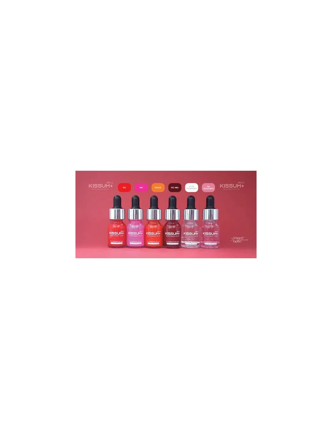 Kissum tint for lips consists of 6 bottles, pre-treatment solution, 4 colors and after-treatment solution.